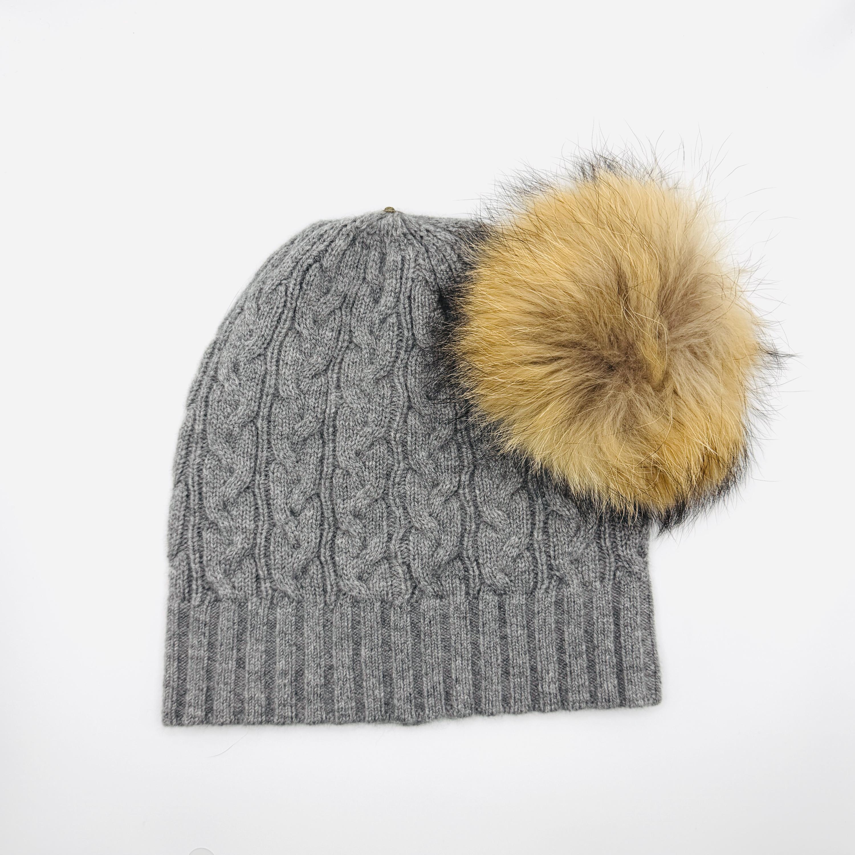 100% Cashmere Beanie with Detachable Fur Pom Pom – Winter Hat – Luxury Women’s Cold Weather Gift