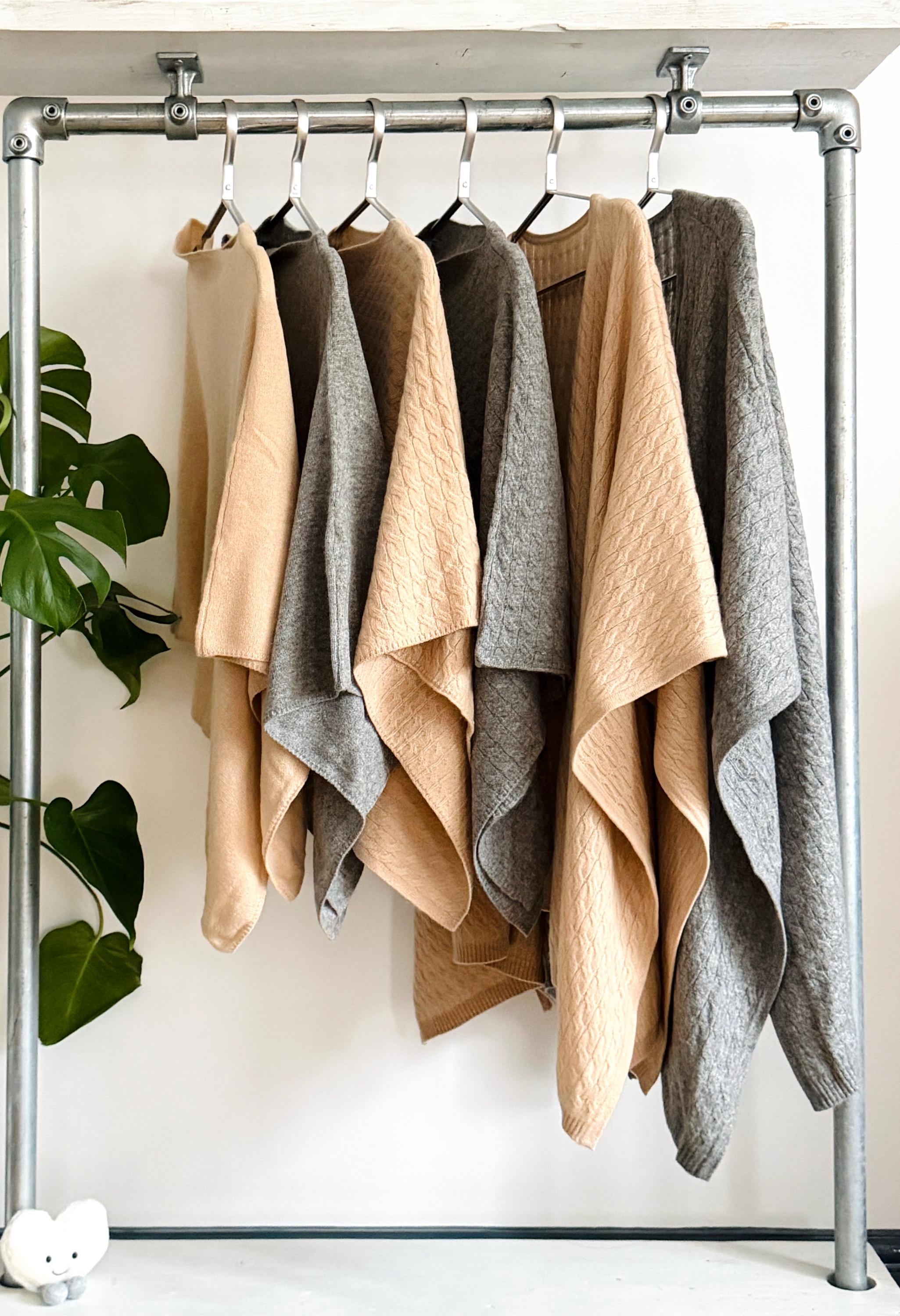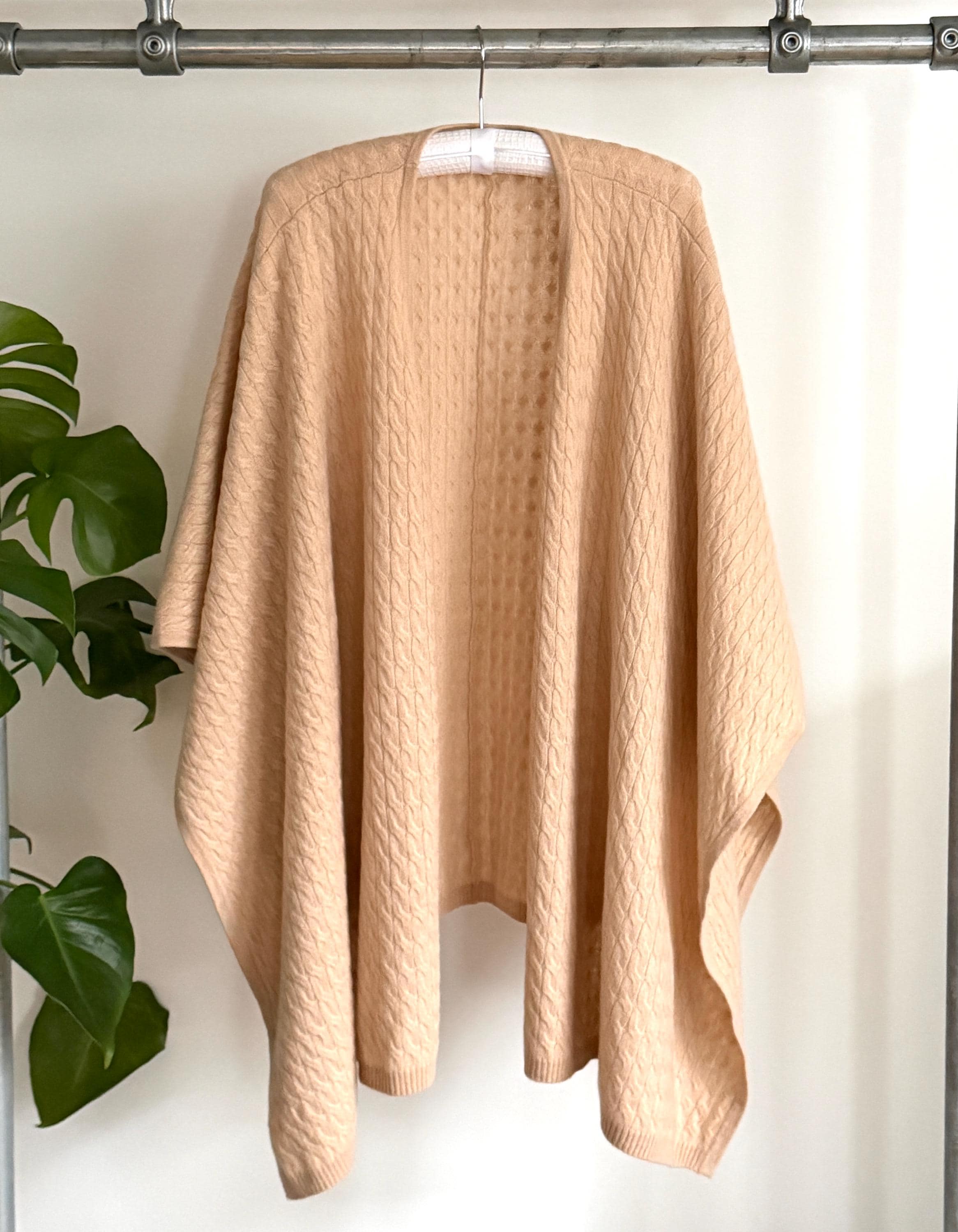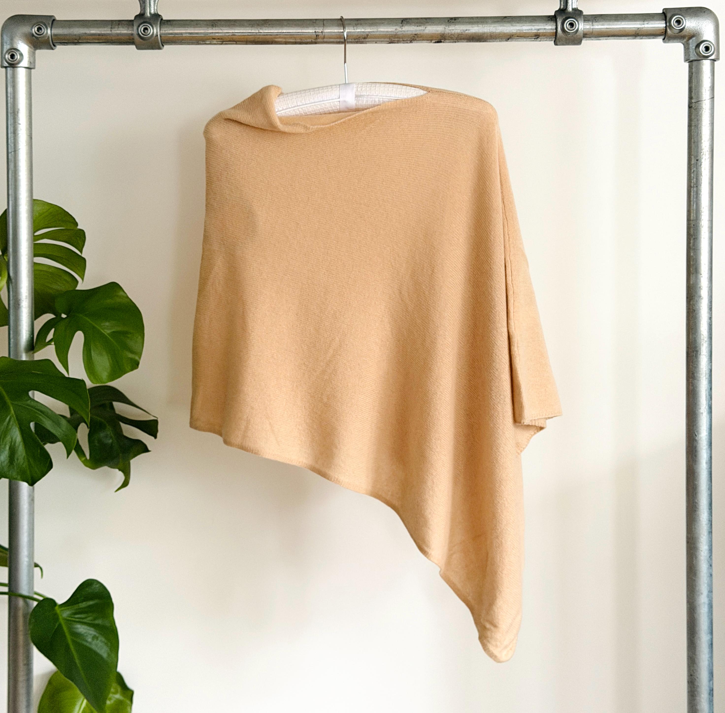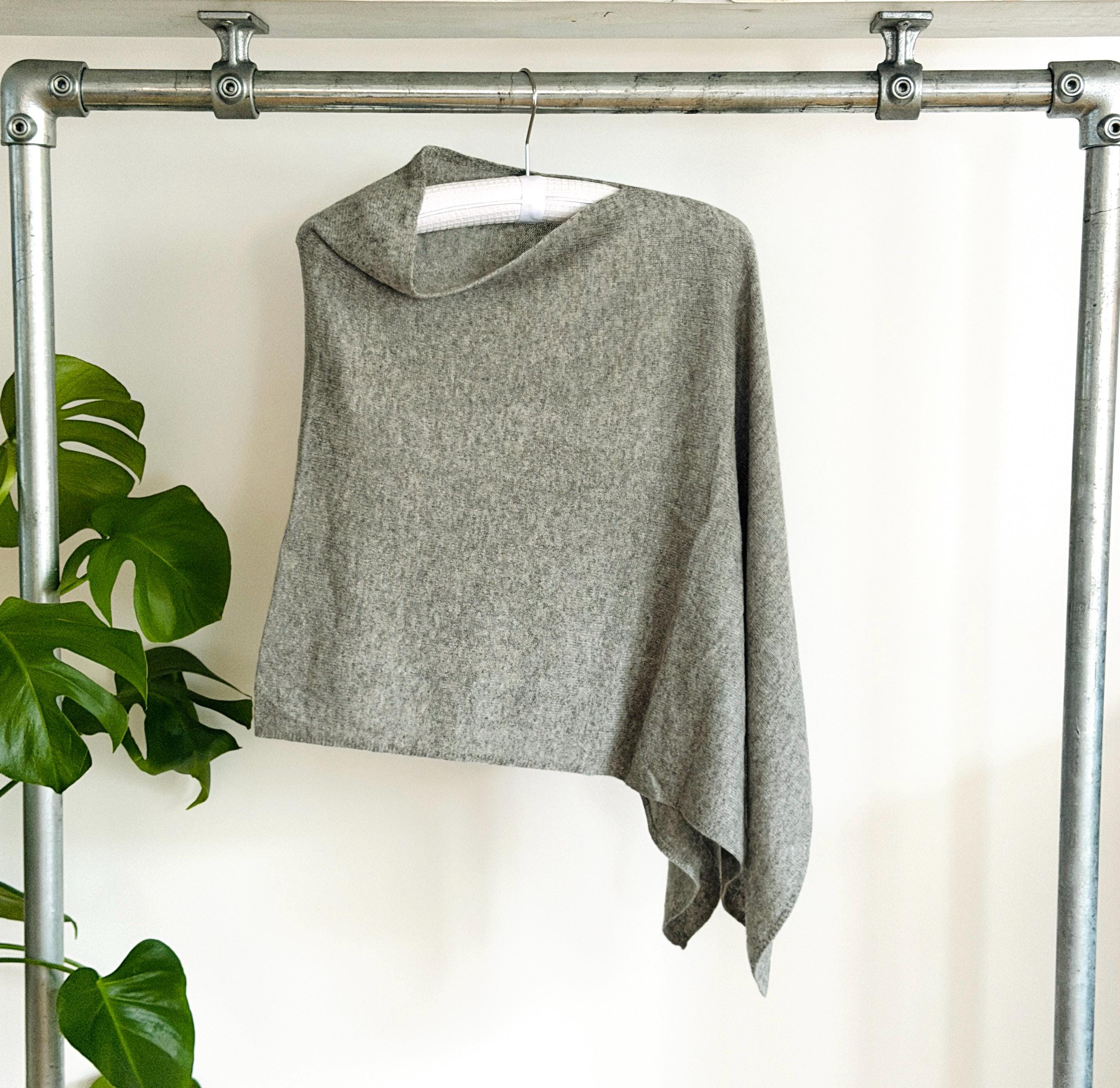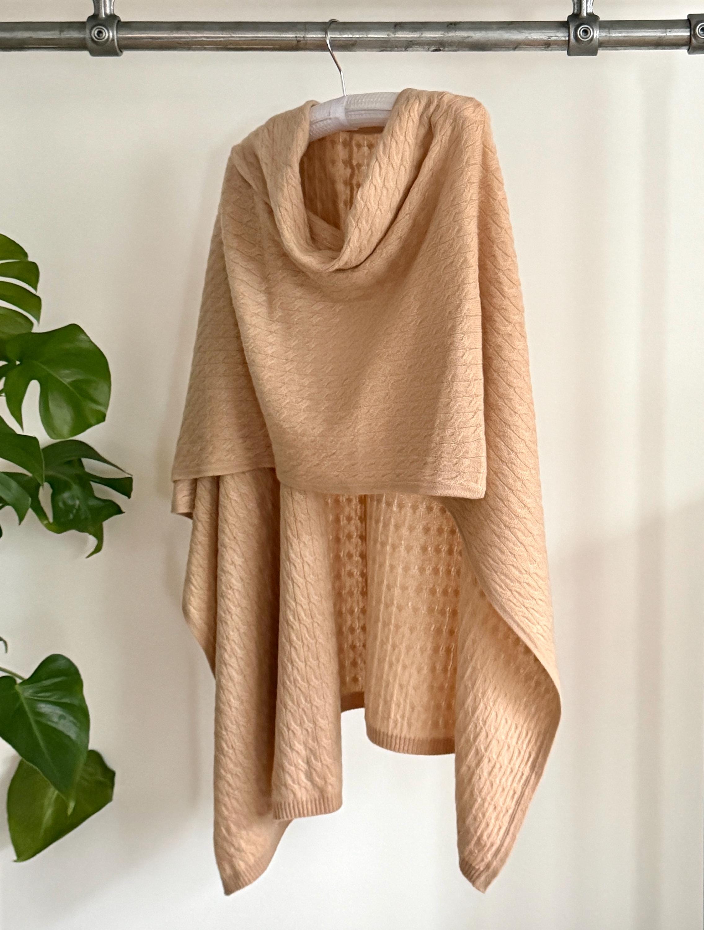 This is a timeless pure cashmere wrap, designed to be worn effortlessly over the shoulders, styled as a poncho, shawl, or elegant cape.
